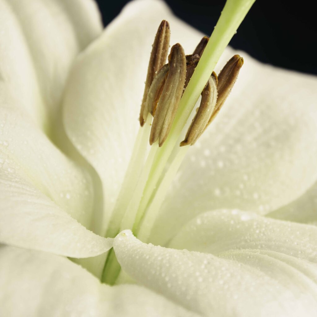 Esta flor blanca, capturada en su interior con precisión, parece hablarnos desde su centro. Las gotas de agua sobre los pétalos reflejan una pausa breve, como si la lluvia hubiera traído un momento de claridad. Observarla desde tan cerca es reconocer que, en los detalles más íntimos, también florecen respuestas. Una imagen para espacios donde se busca conectar con lo que no siempre se muestra, pero está.
