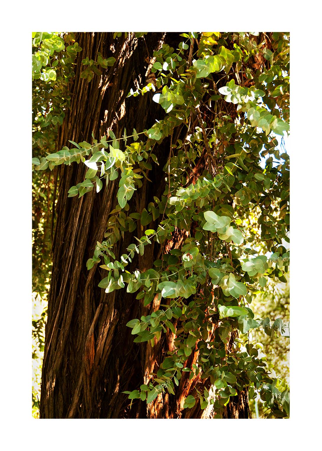 Esta fotografía del imponente eucalipto nos transporta a su entorno natural, invitándonos a sumergirnos en su belleza majestuosa y a observar cada detalle con admiración y respeto. La medida justa de la imagen nos permite apreciar cada hoja, cada rama, cada textura de su corteza, para adorar su grandeza. Al contemplar esta imagen, nos conectamos con la naturaleza y sentimos su fuerza y serenidad, recordándonos que formamos parte de algo mucho más grande y hermoso.